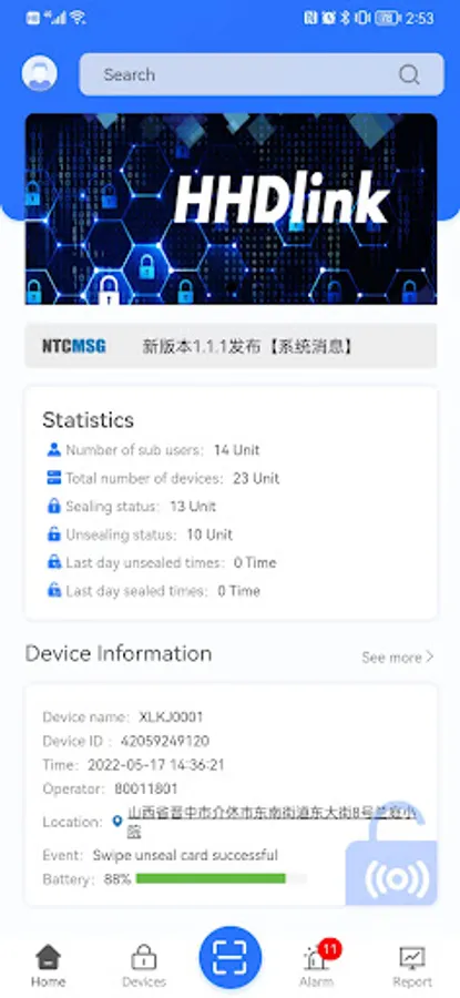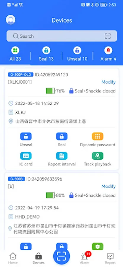 The app supports many different IoT devices, such as smart electronic locks, GPS trackers, LoRa locks, Bluetooth locks, smart sensors, video terminals etc.