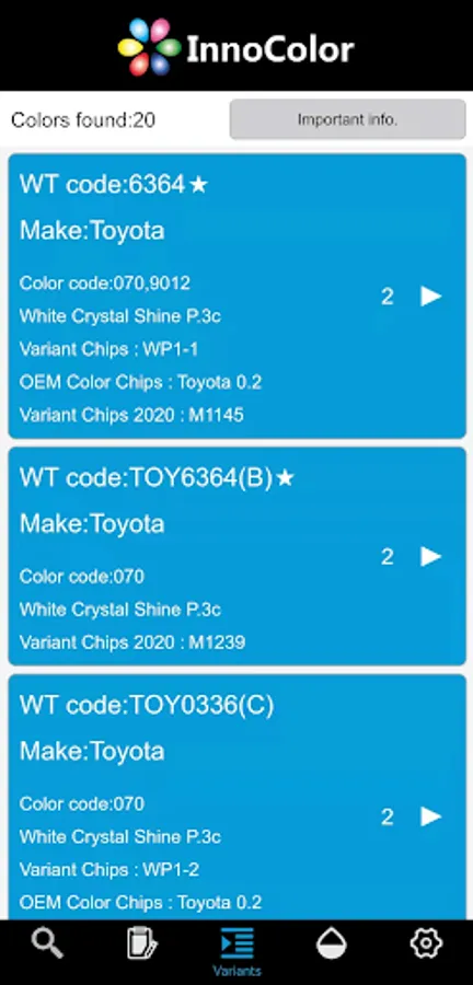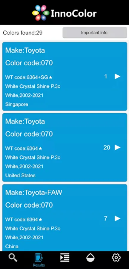 Wonder-Tech Refinish is a brand new APP for searching color mixing formulas. It could meet the demand of worldwide customers. The newest data will be updated to the APP while the user connect to Internet and open the APP. It is convenient to search the color mixing formulas by using Wonder-Tech Refinish. The mixing formulas could meet the requirment of mixing, comparing color for car refinish. Wonder-Tech Refinish is a simple, practical APP.