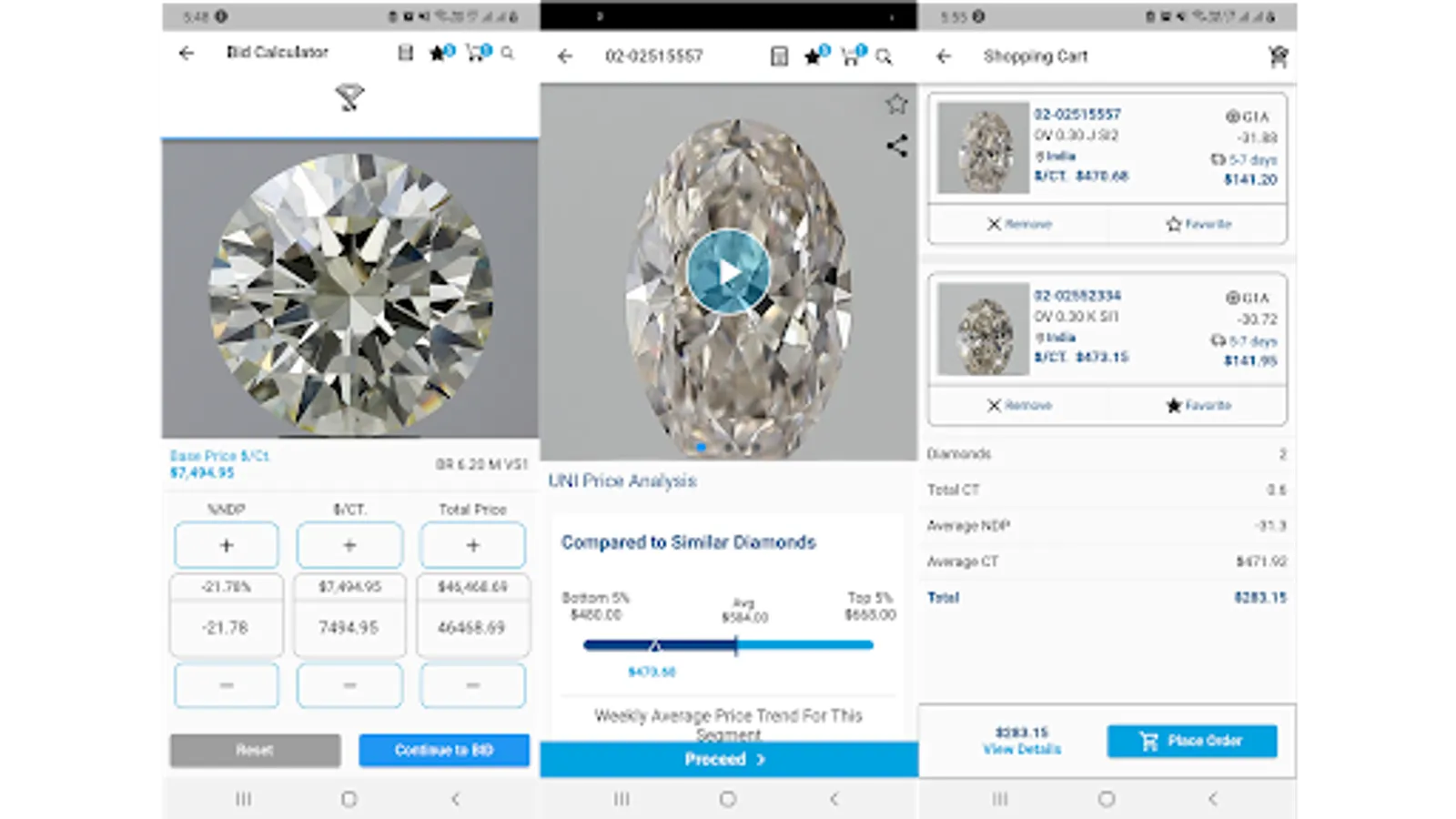 UNI provides manufacturers, vendors and buyers the ability to seamlessly and digitally search, compare, value, bid and buy diamonds, verifying all the required information and market data.