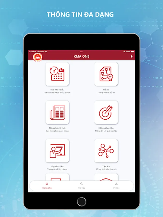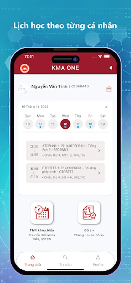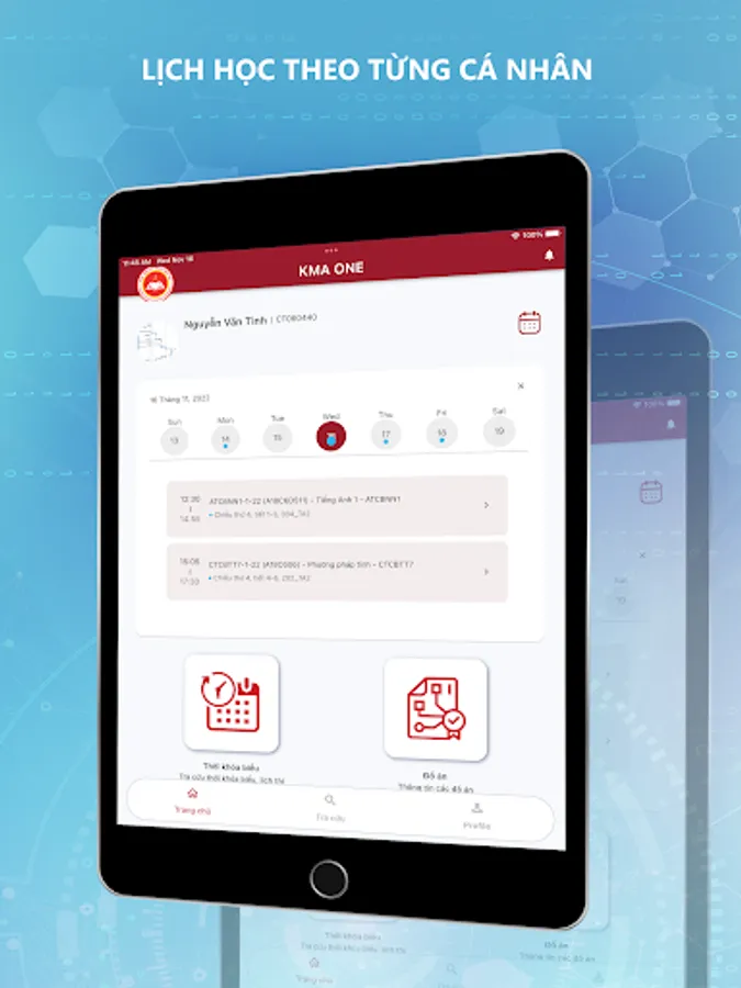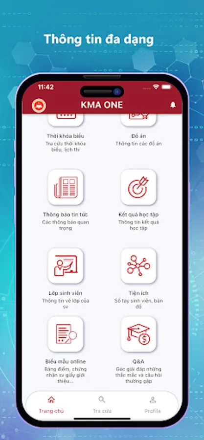 KMA ONE application provides functions for both students, faculty, and school staff. With this application, you will have the ability to access and exploit school information quickly, easily and efficiently: