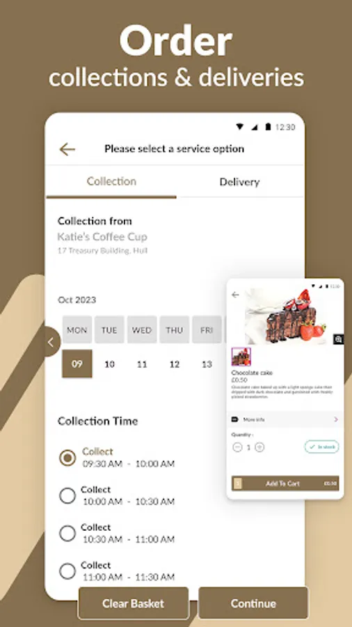 Save time by placing orders with your favorite local shops for collection or delivery.