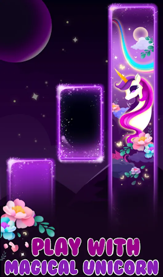 Enjoy playing piano tiles unicorn with vocal and music and purple with pink tiles graphic for girls, and play your favorite songs.