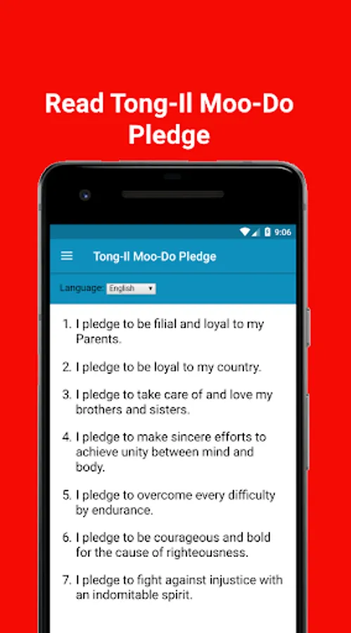 Also the app contains the Tong-Il Moo-Do Pledge text in these languages: