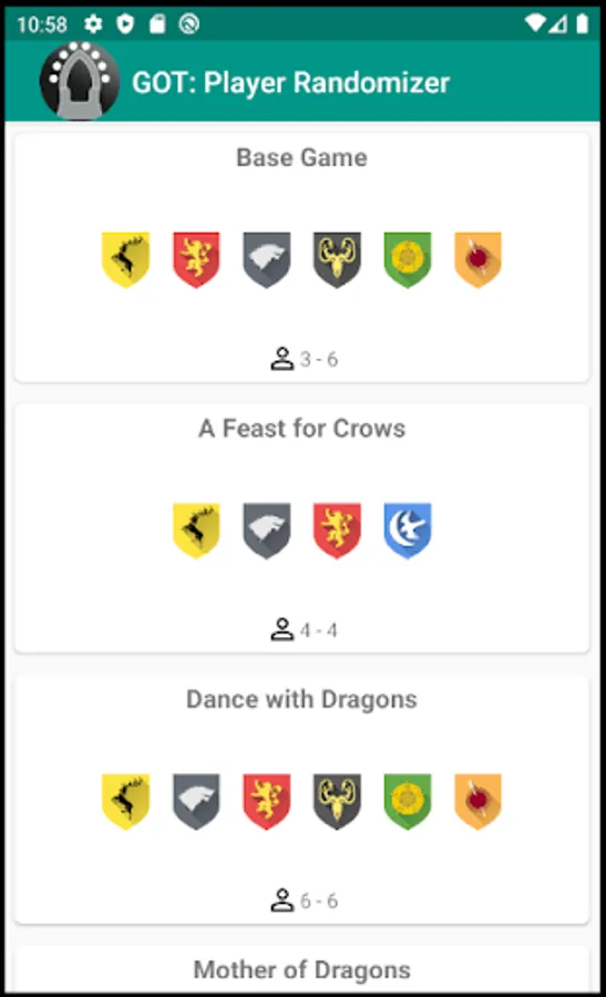 This app is only for selecting Houses in Boardgame: Game of Thrones