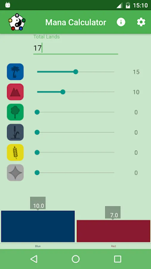 This app will help you with calculating the number of lands for your MTG decks in sealed tournaments.