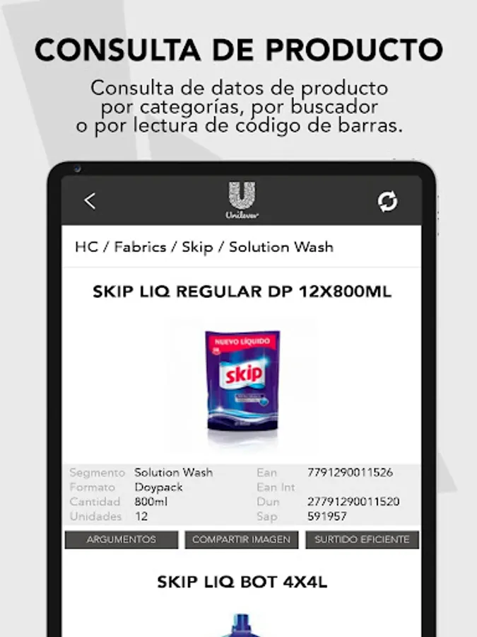 This application allows to see the complete catalog of products, access information and business management. It has a system of alerts by type of users for the communication of news and launches, and has incorporated reading bar code for the product query function. It allows access data off-line mode.