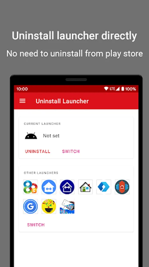 Within this app, you can uninstall your default launcher directly without finding and uninstalling from the play store.