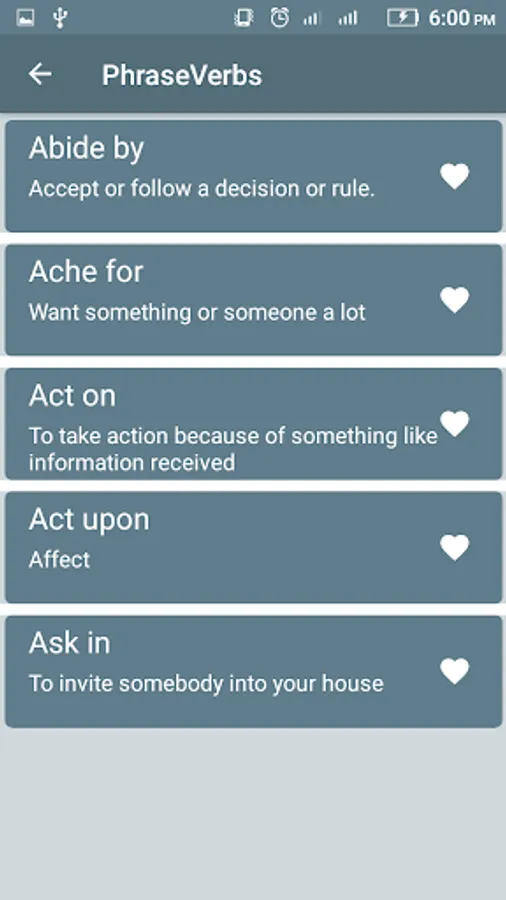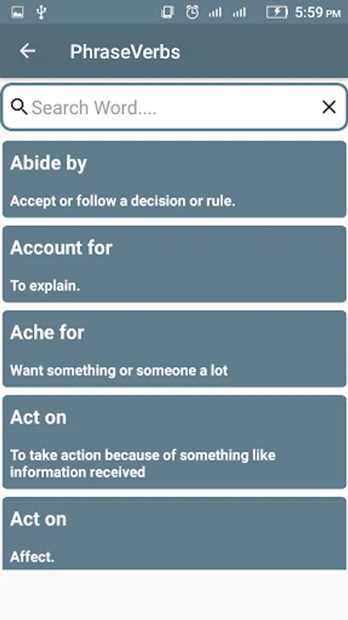 Phrasal Verbs: Usage of phrase is beautiful app for learning english.English phrasal verbs usage is now easy to learn English, we have develop easiest app to teach you how to use English phrases, and verbs, There are dozens of rules and nuances in this topic, but we have made maybe the easiest way to deal with it.