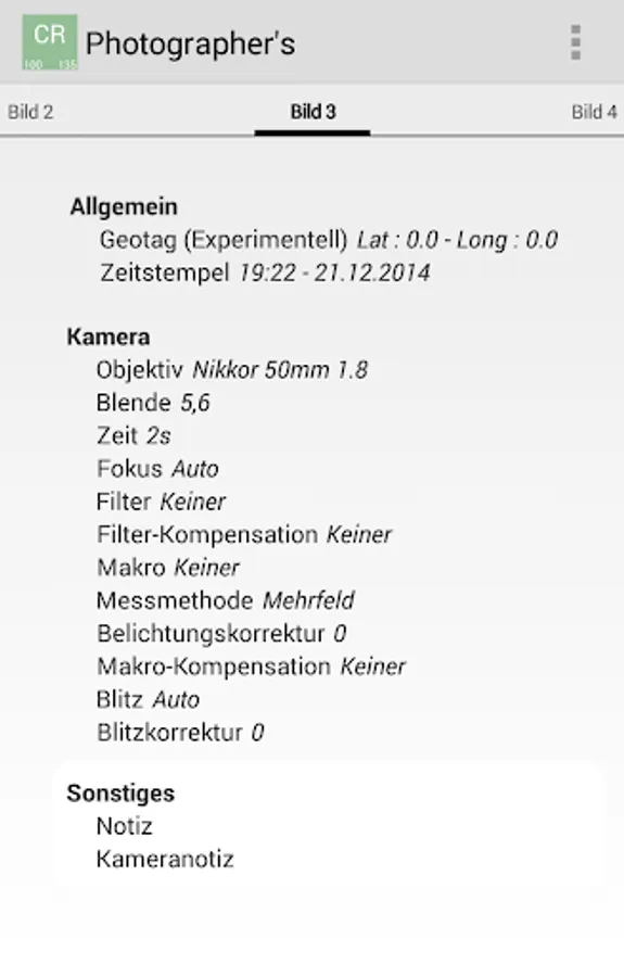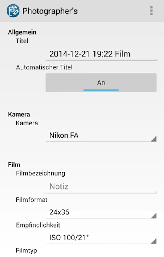Photographer's Notebook is an app to store and manage metadata of analog photos. It is meant to replace the usual paper-based notebooks photographers use to document camera settings in analog photography.