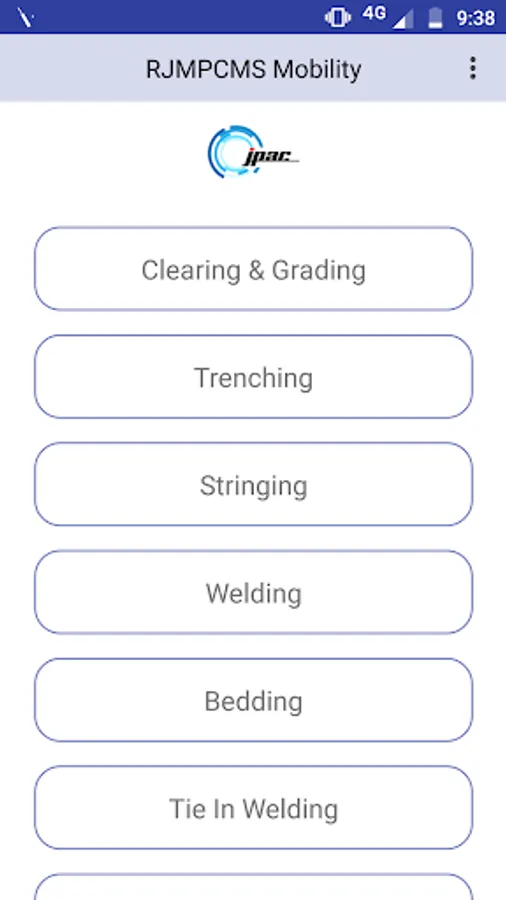 In this App there is Pipeline Construction Management Software for RJMWTS. The Activities are Clearing and Grading, Stringing, Welding , Tie in Welding, Joint Coating Blasting, Joint Coating Final, and others.