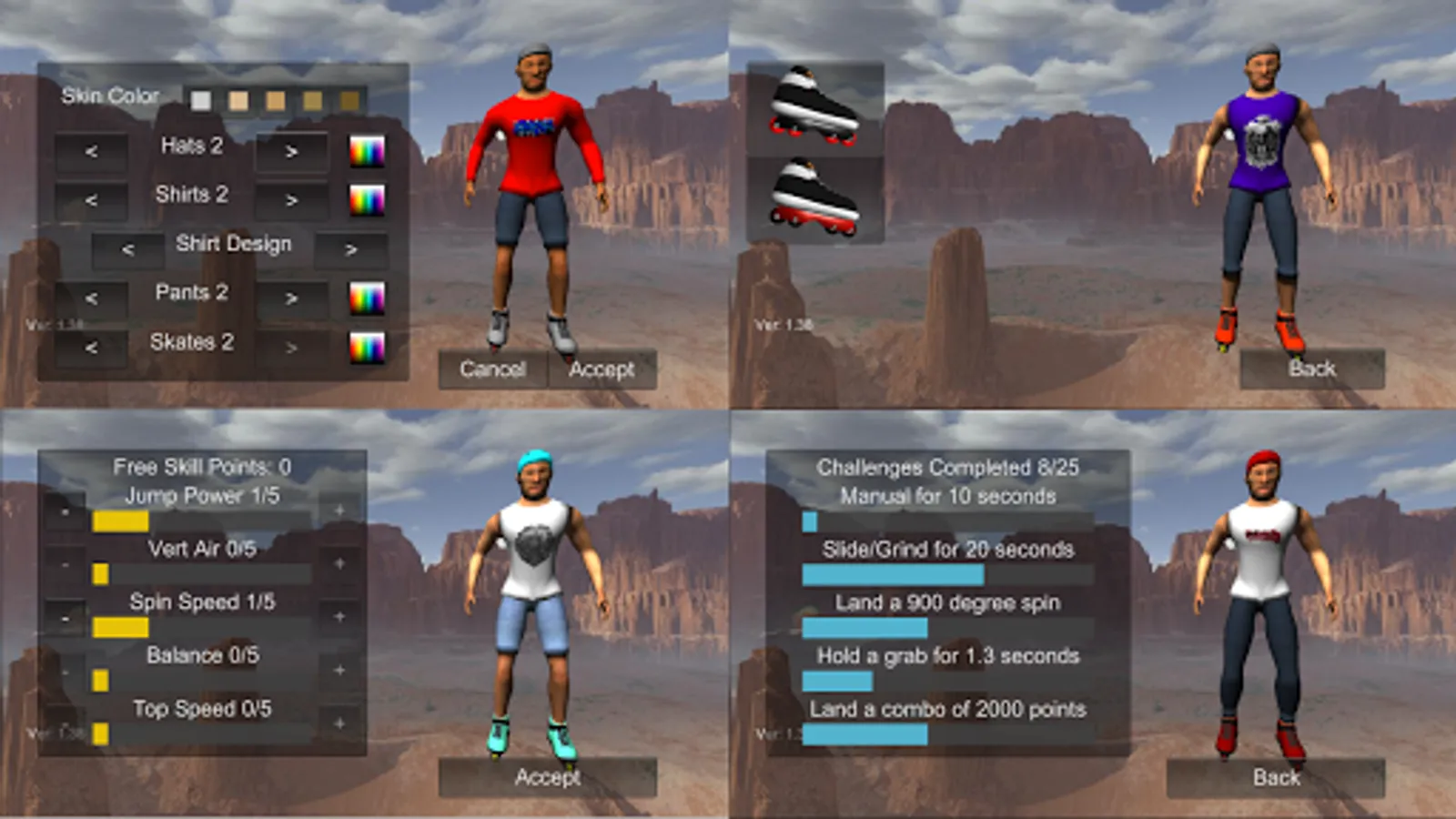 Earn skill points to level up your characters skills, like jump height, spin speed and more!