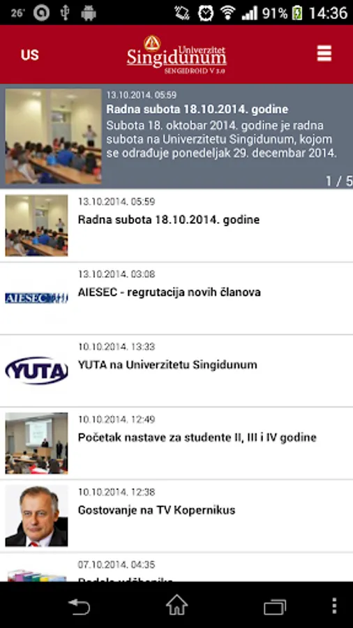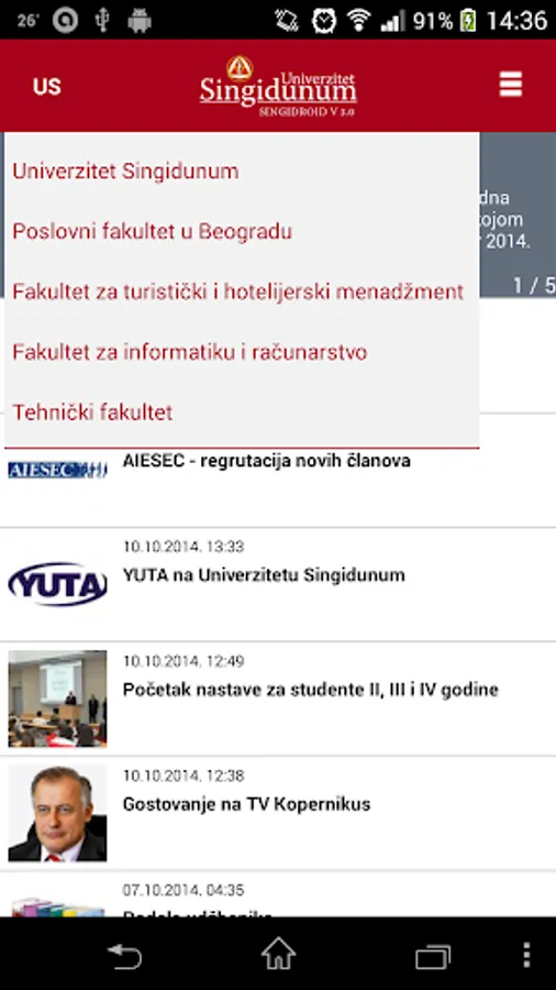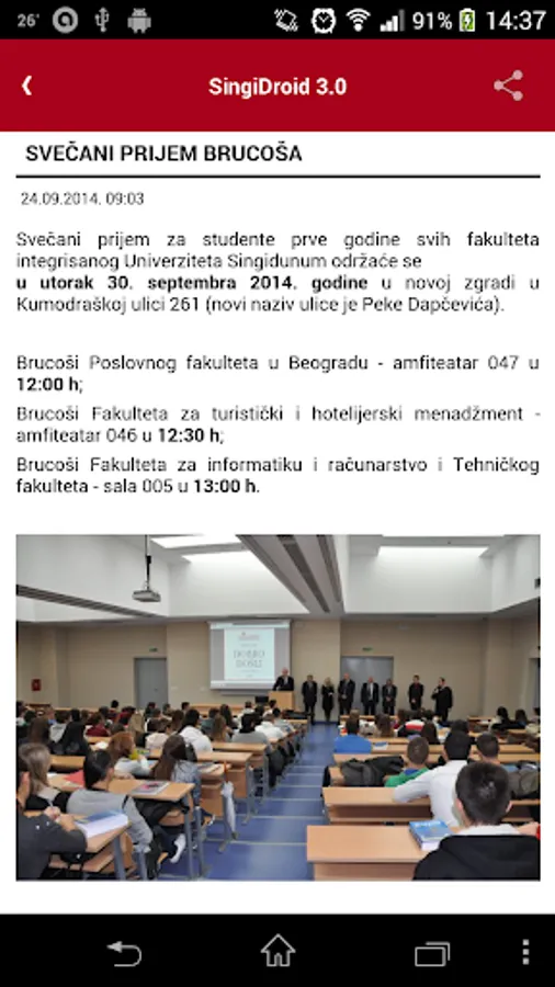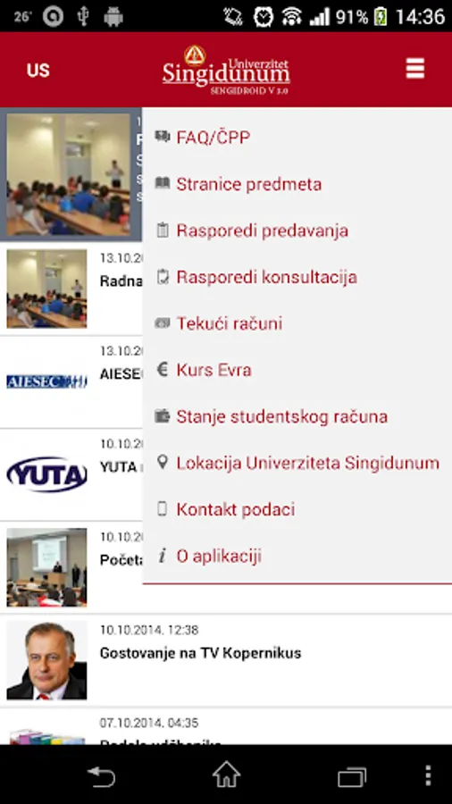 SingiDroid the application of the Singidunum for mobile phones with the Android ™ operating system, designed for students integrated colleges.