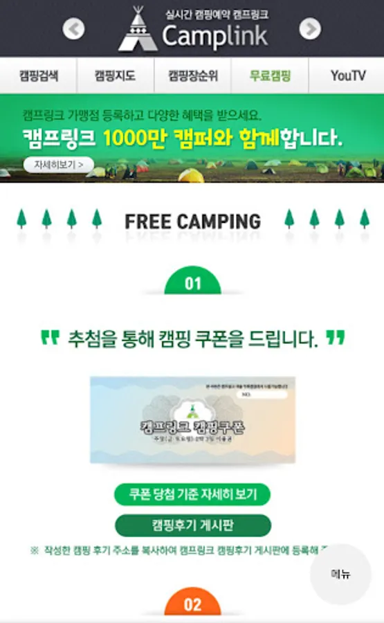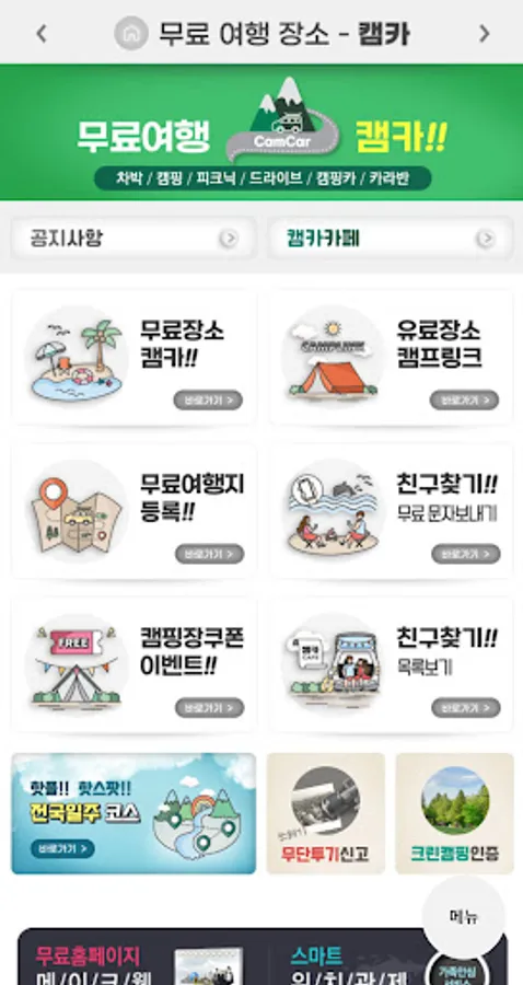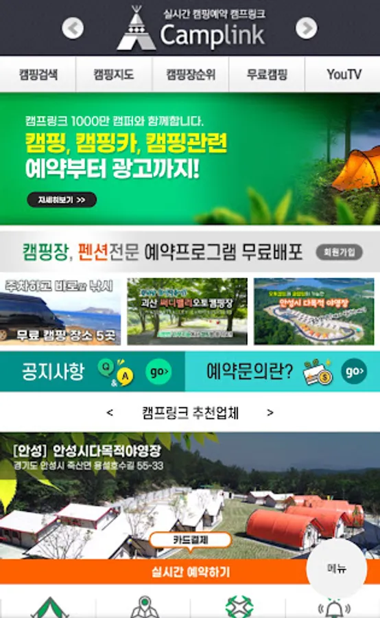 It is a free application provided by Camp Link, which made the first camping site reservation application in Korea, and supports a more professional camping site reservation program than the Thank You Camping Reservation Program and the Campit Free Program.