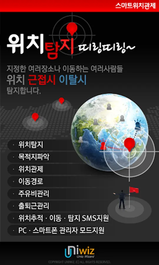 It is a service that collects location information (server transmission) through GPS, 3G, and WIFI sensors of a smartphone to control location information of multiple people / objects, movement paths, and location detection.