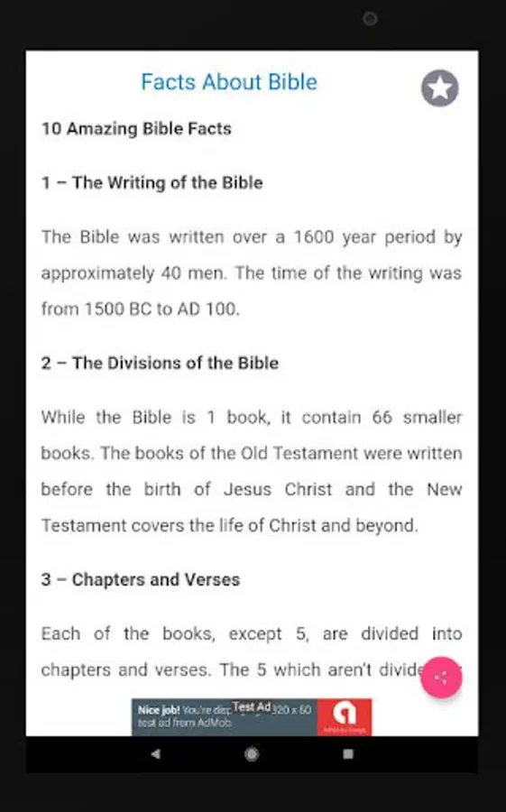 Facts about the Bible The Bible is filled with many interesting facts. This can be used as a fun quiz for kids, adults, etc. If you read the Bible from cover-to-cover there are certain items which simply reach out and grab your attention. These are not necessarily earth shattering items, but they can be used to reveal whether or not someone who claims to have read the Bible, actually has.