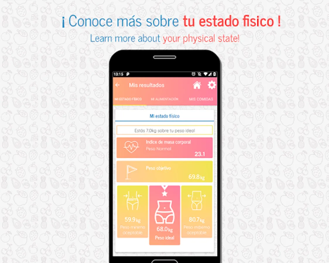 With this application you will know how to eat, how to distribute your meals, know more about your current physical state in just one click, in a fast and efficient way.