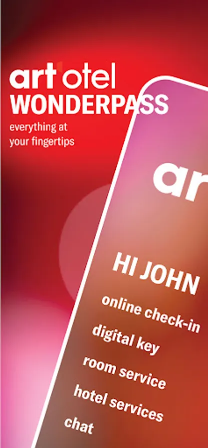 With our new art'otel wonderpass App, you can now use your digital key and get access to a variety of hotel services.