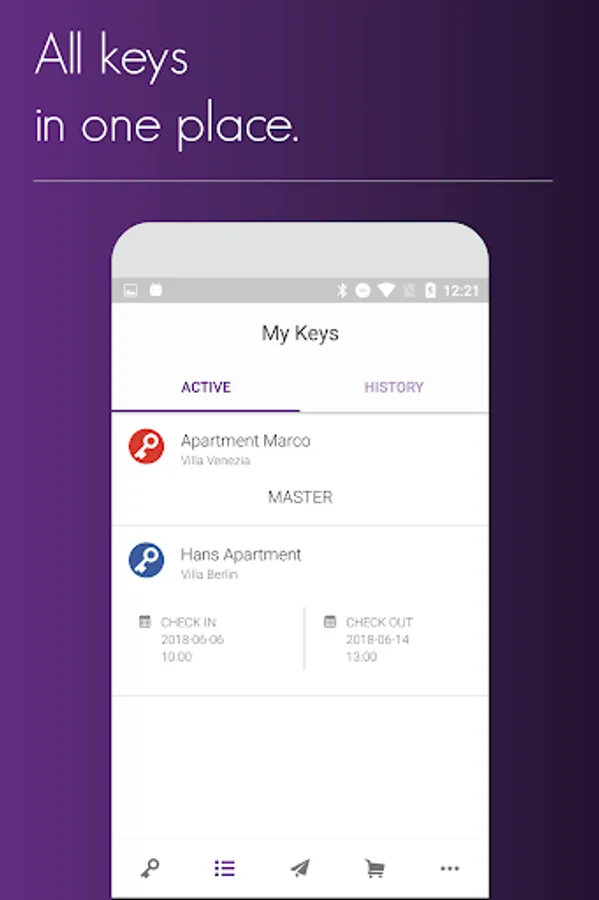 All keys in one place. For unlocking a door, you do not need to look for a specific key, now the application is doing this automatically.