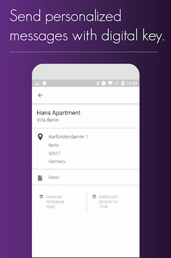 Now you can unlock your door with your mobile device. Whether you own a real estate or you are a guest, digital key enables you to safely unlock and lock your doors.