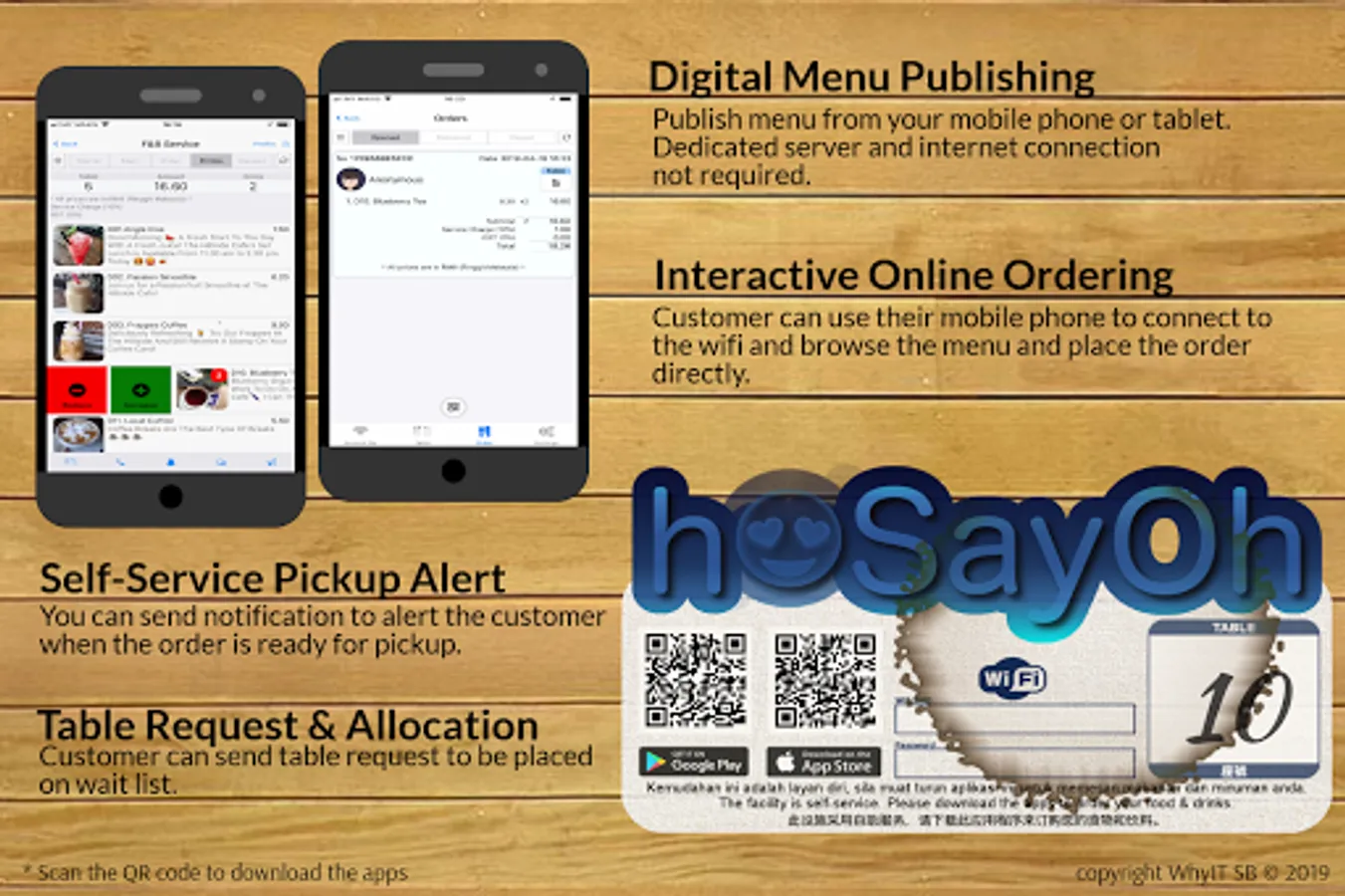 For Mobile Food Truck Operator and Hawker alike, by running a battery powered wireless AP, and set your SSID for easy reference. your customer using the HoSayOh app (code name yitzme) can connect and refer to the menu you published to make order online without having to stand in the queue.