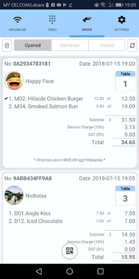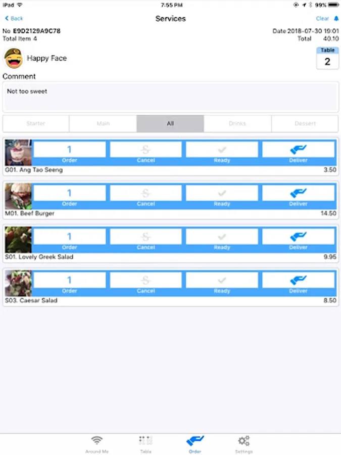You can also delegate the order processing and table handling task like kitchen, bartender, waiter and cashier to multiple devices running hoSayoh app to carry out the task concurrently.