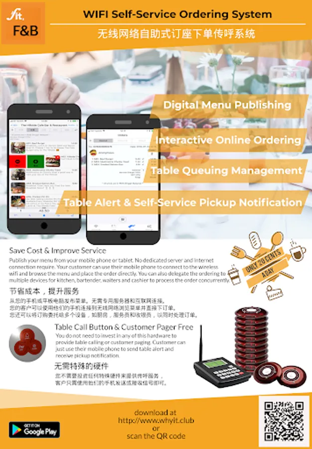 Turn your mobile device into a server for restaurant, food court and hawker centre to publish menu, taking order, managing booking and response to calling and paging via local wifi connection. Internet connection and dedicated server not require. The customer mobile device can become a receiver for the Restaurant Buzzer System. And the customer can also trigger desk bell remotely from their mobile device as in the Restaurant Calling System. All is done using this app without the need of any special hardware.