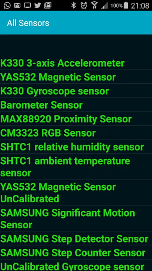 The Android App supports three broad categories of sensors: