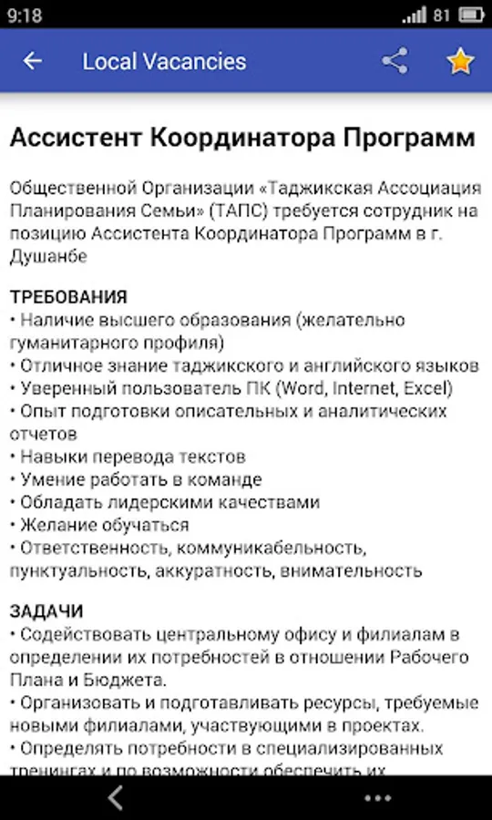 UNTJ Работа в Таджикистане Screenshots