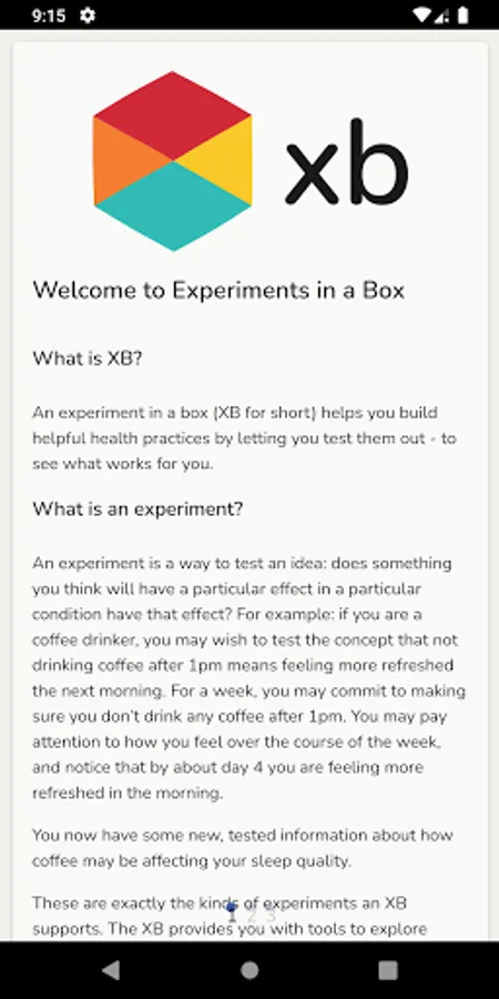 As one Experimenter said “i’ve heard that 8 hours of sleep a night is good for you, but if i hadn’t tried that as an experiment in a box, i would never have really found out. IT’s changed my life” -