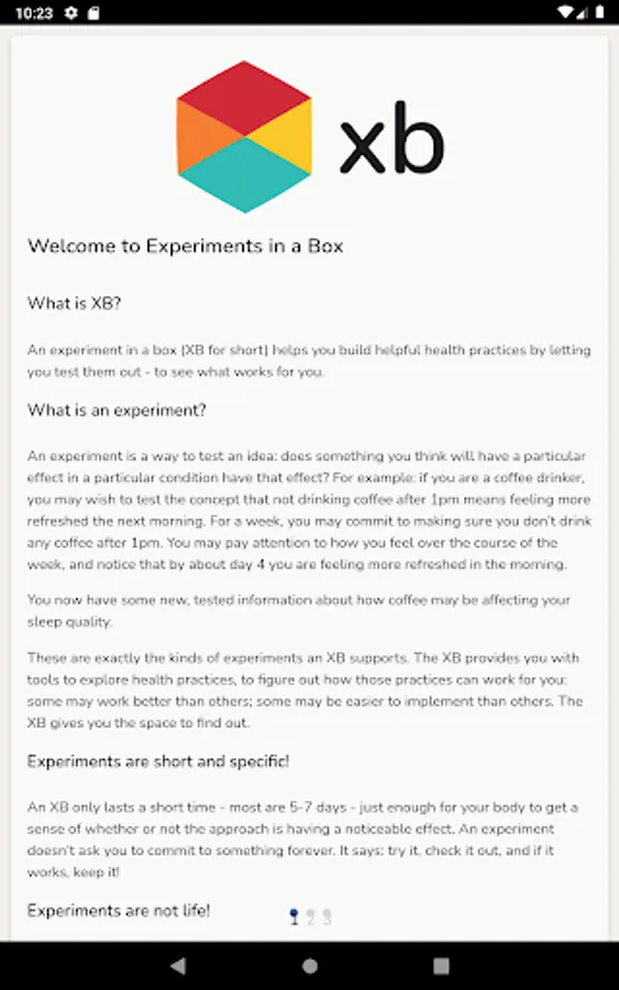 These are exactly the kinds of experiments an XB supports. The XB provides you with tools to explore health practices, to figure out how those practices can work for you: some may work better than others; some may be easier to implement than others. The XB gives you the space to find out.
