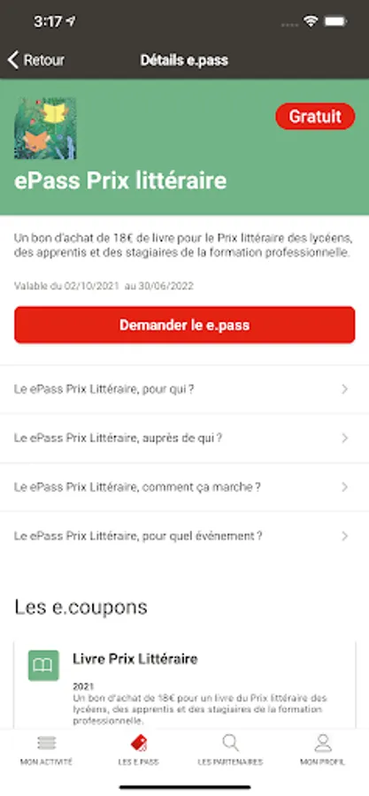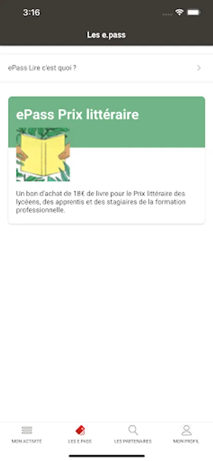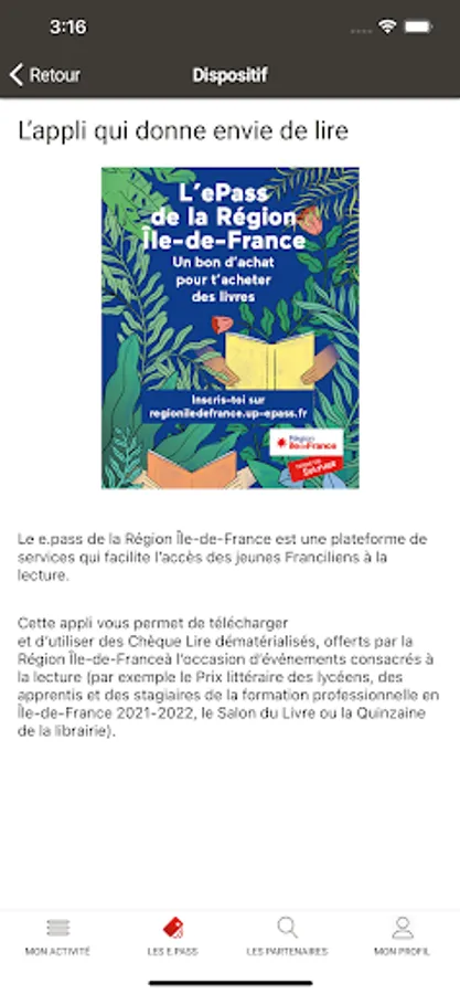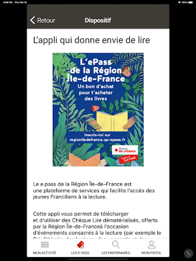 The ePass Île-de-France app allows young high school students, apprentices and vocational training interns to use their dematerialized vouchers from partner bookstores.
