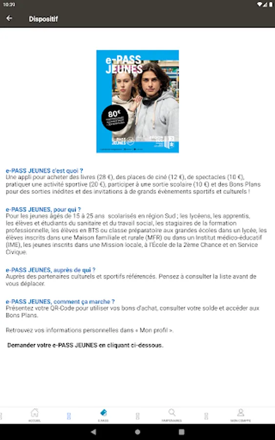 If you do not have partner access, we invite you to make your request from the site https://e-passjeunes.maregionsud.fr/.