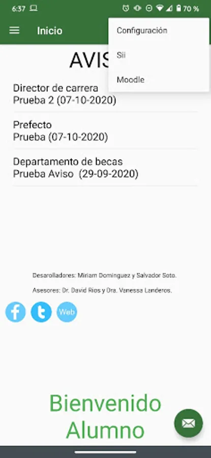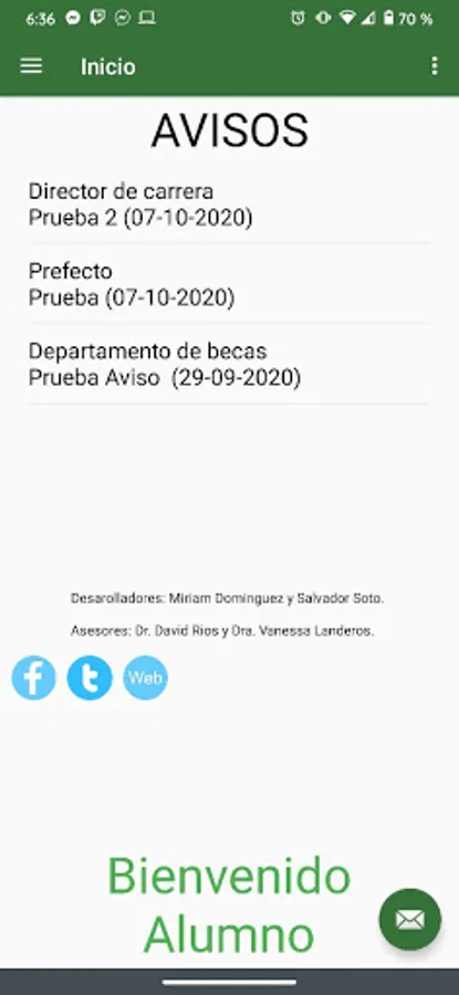 • Communication section to contact teachers or administrative staff