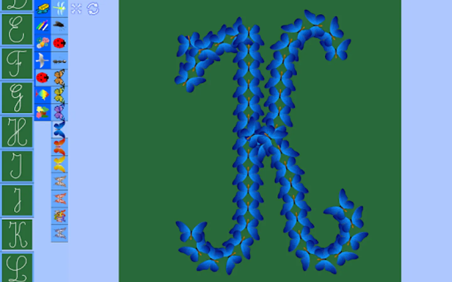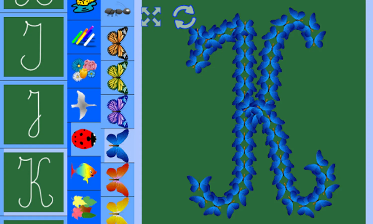 A child or an adult can also create his/her own templates of letters and forms, by pressing the redo icon in the top left corner, then someone else can reproduce this new model.