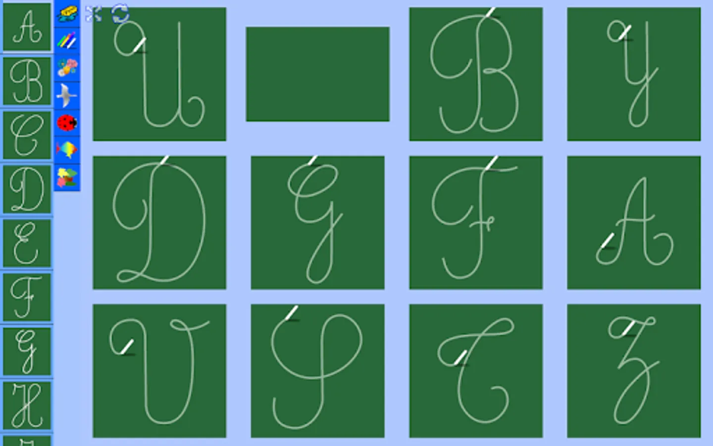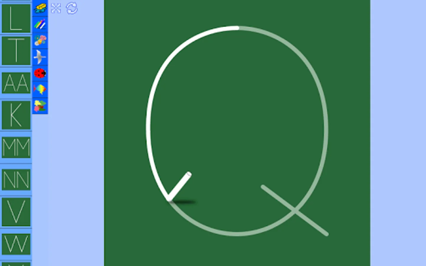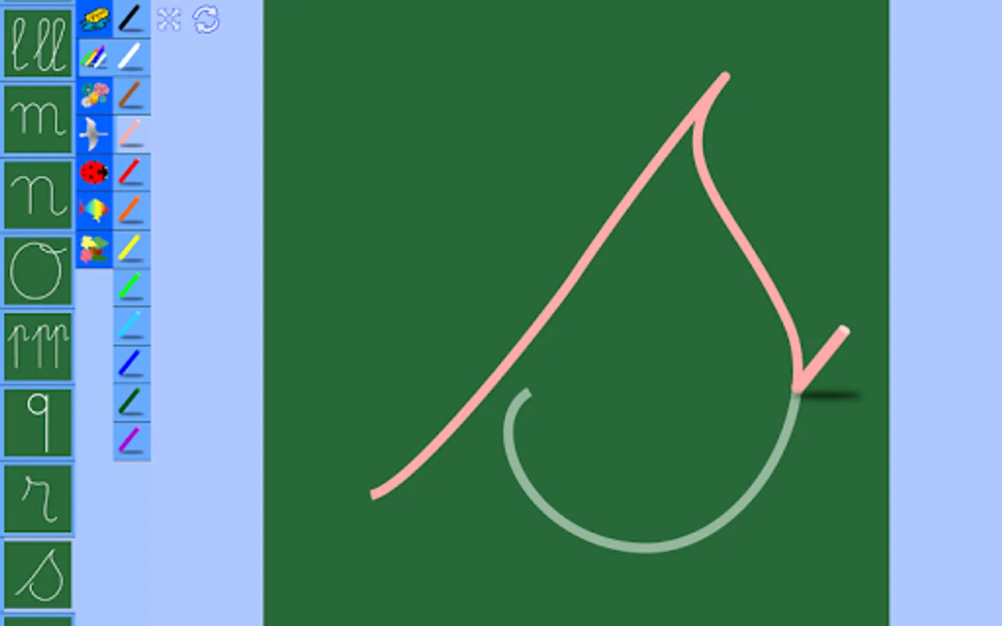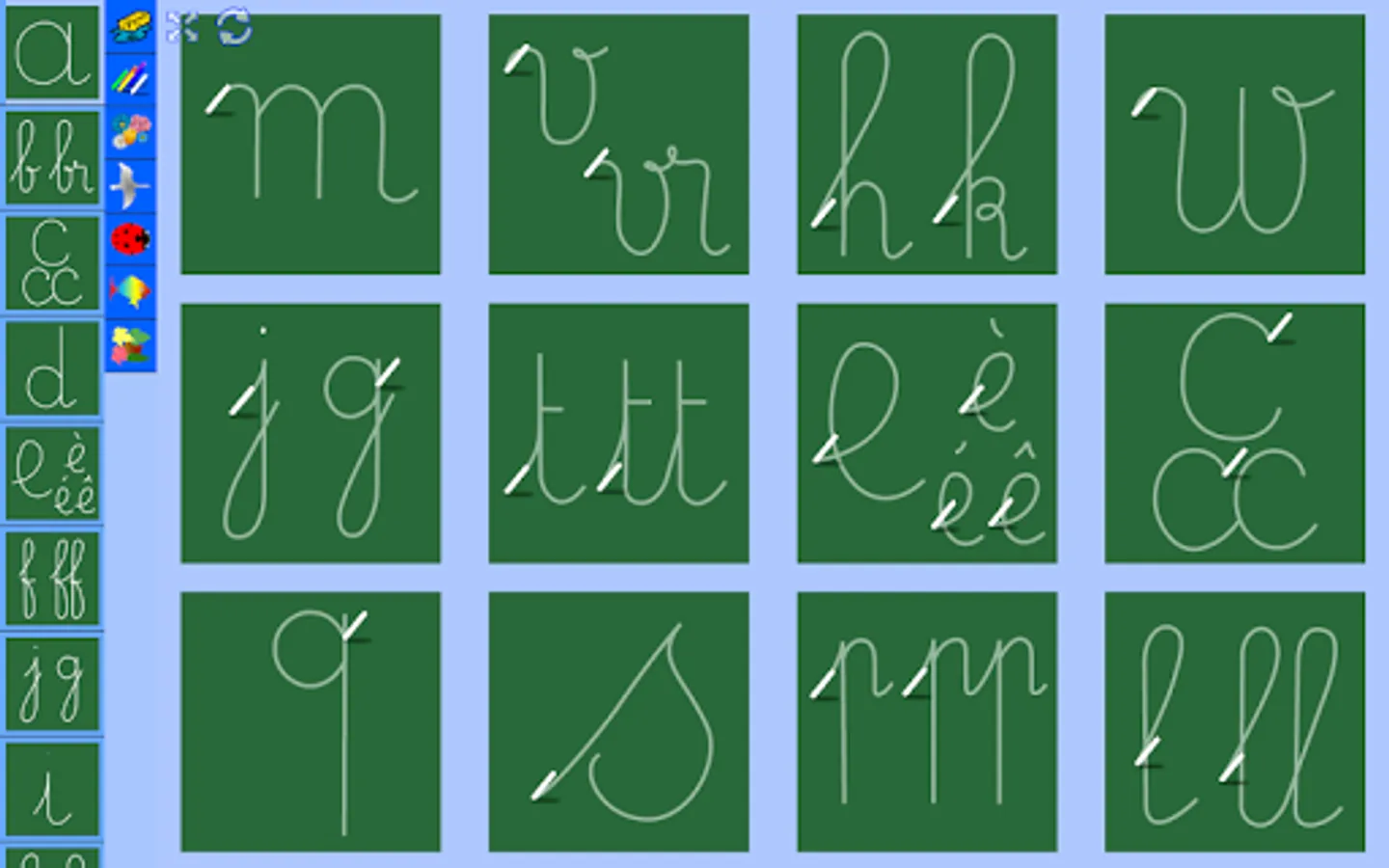 In the Writing letters and numbers app, first, manuscript letters are given by increasing order of difficulty. and then cursive letters are given in alphabetical order. Thus, the child is aware of alphabetical order and prepared for the future use of dictionaries.