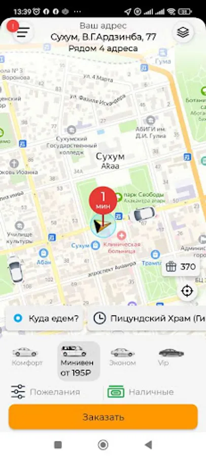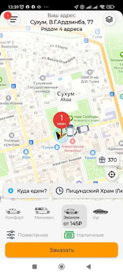 The online taxi order service works in the cities of Abkhazia: Gagra, Sukhum, New Athos, Gal, Gudauta, Ochamchira, Tkuarchal