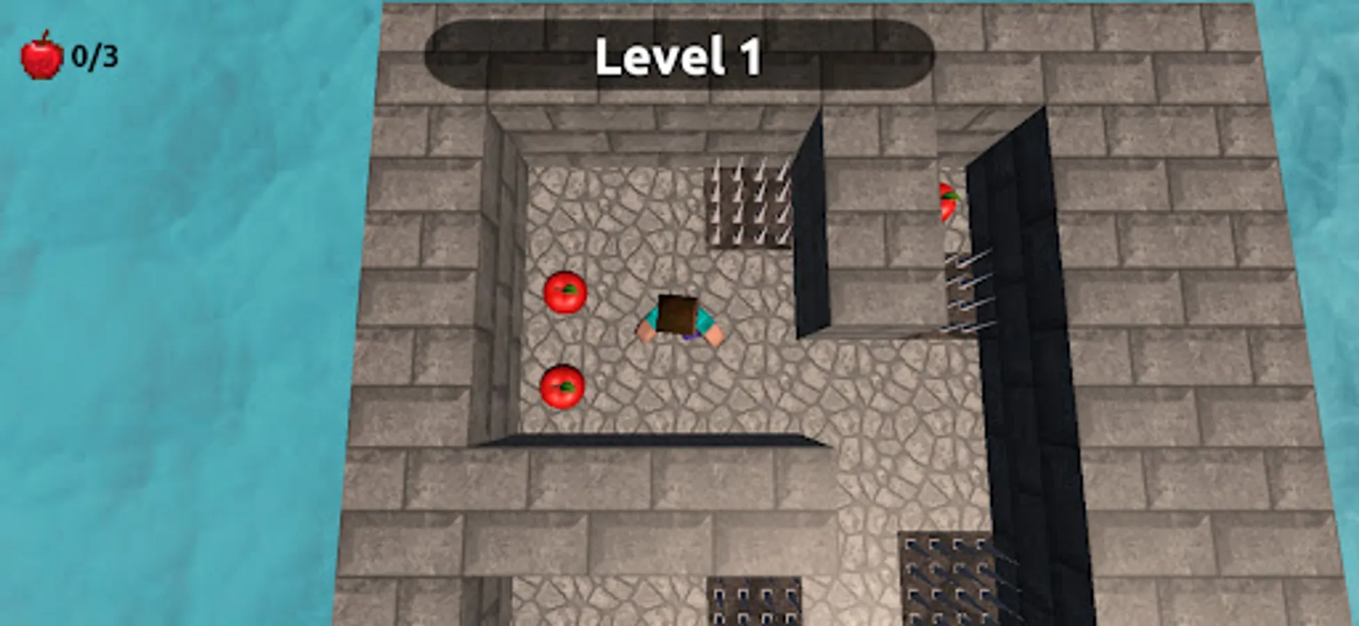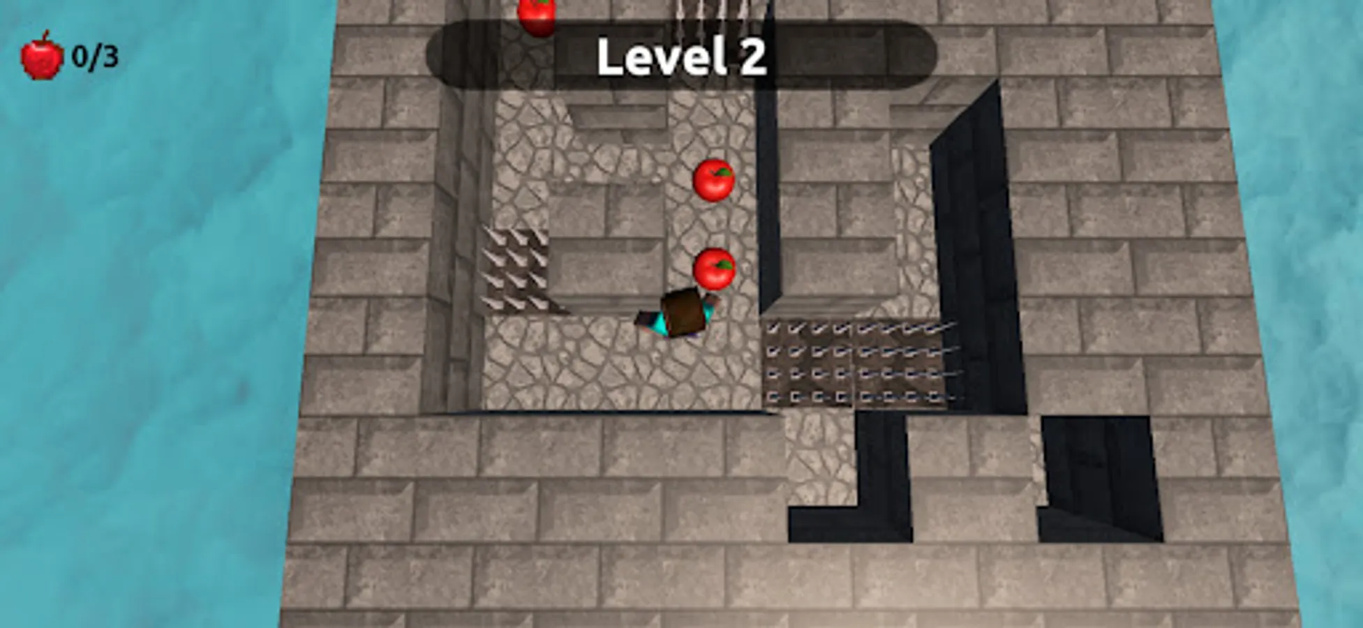The levels are randomly generated, and each level is a maze with different obstacles such as spikes and walls. If the player touches the spikes, they will instantly die and have to start the level again. To complete a level, the player must collect all the apples.