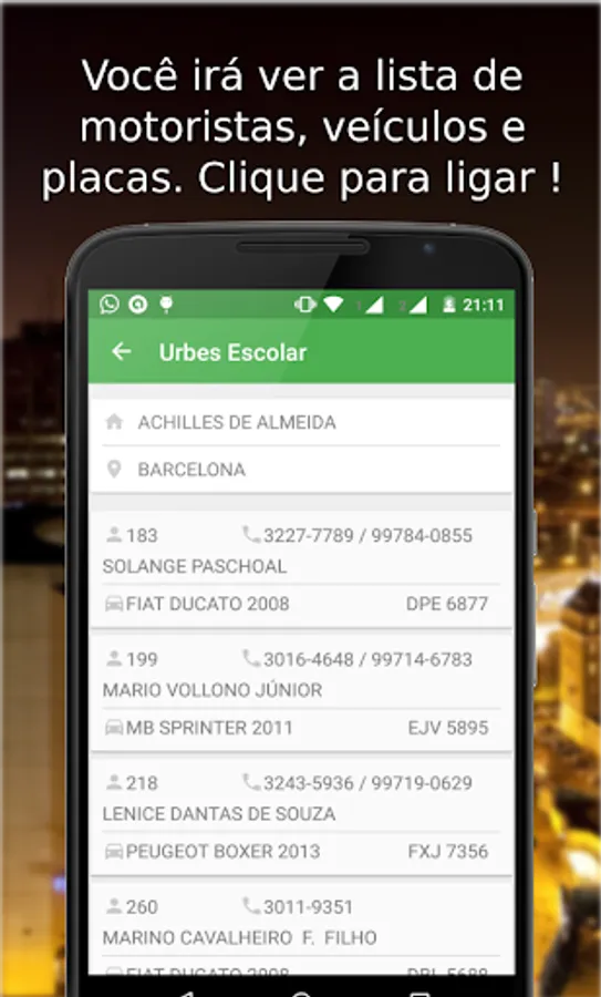 The application shows the easy and fast way the list of school vans drivers of Sorocaba properly regulated by Urbes - Traffic and Transport.