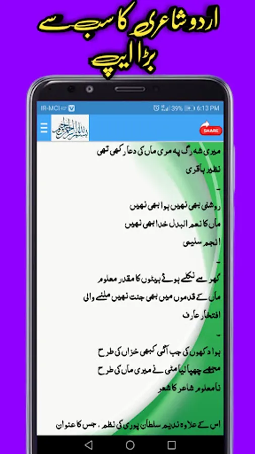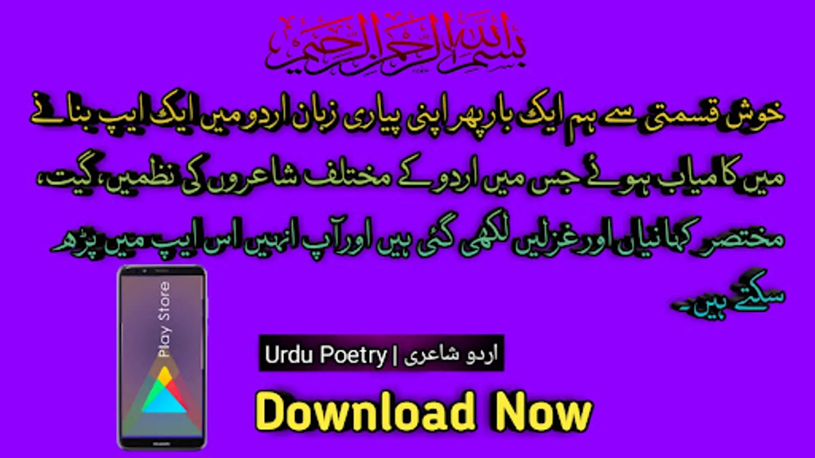 Fortunately, we were once again able to create an app in our sweet language, Urdu, in which poems, songs, short stories, and ghazals of various Urdu poets were written and you can read them in this app from our app. Every day you can get new poems by different poets. You can easily copy your favorite poems from our app and use them on your WhatsApp status or Facebook. All available.