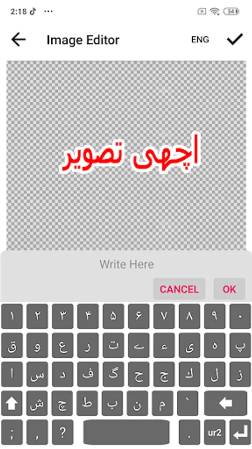 Step 2: Write text using urdu keyboard on your sticker and decorate your creativity and finish it.