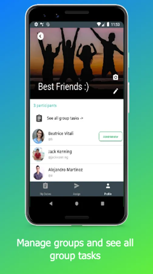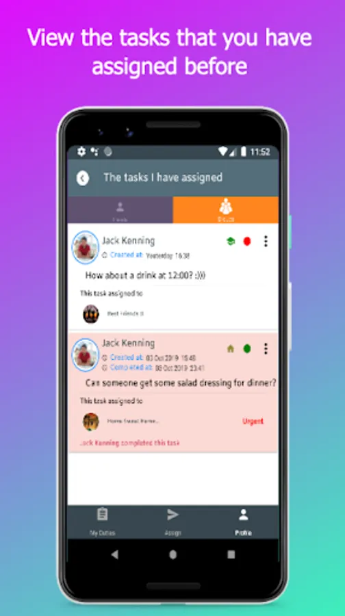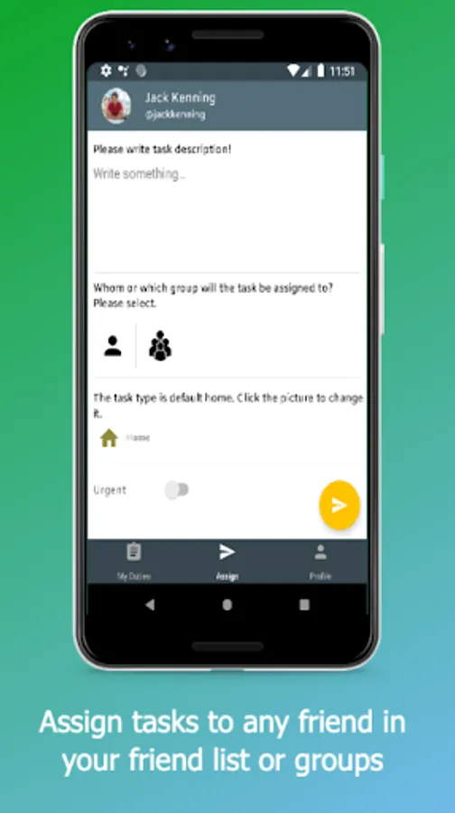 ● You will be able to assign tasks to any friend in your friend list or groups.