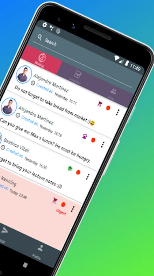 ● You will be able to define the new task urgently. You will be able to mark your current open tasks as urgent if it is urgent. You will be notified to your assigned friend or group of friends for urgent marked tasks.