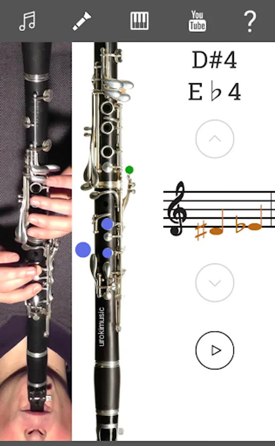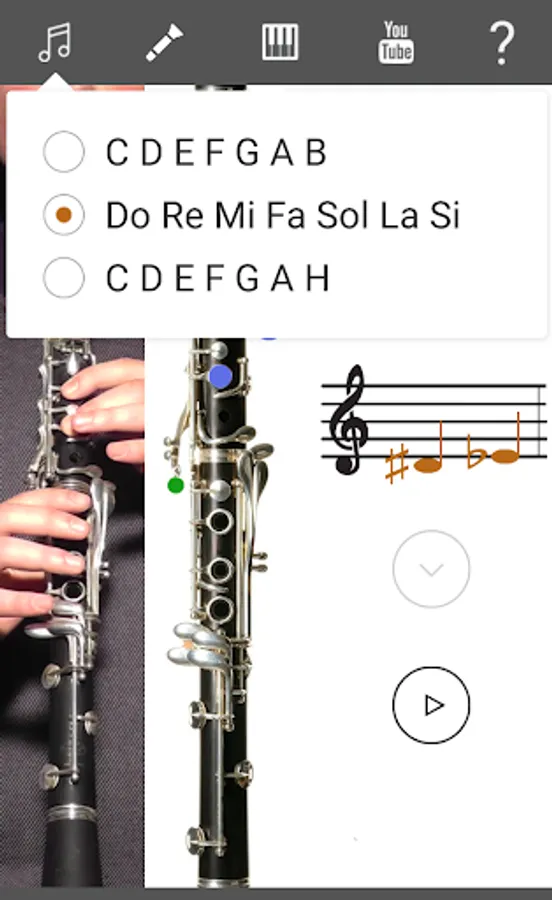 This application shows you the position of the fingers on the instrument. You can hear the sound of each musical note. There is a diagram of the finger positions and a demonstration by a live clarinetist, so you will learn How To Play Clarinet. There is a section with clarinet lessons. You can choose different types of clarinet: C Clarinet (Soprano clarinet in C), B♭ Clarinet (Soprano clarinet in B♭), A Clarinet (Soprano in A).