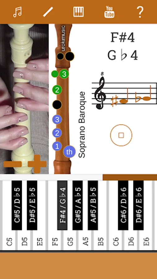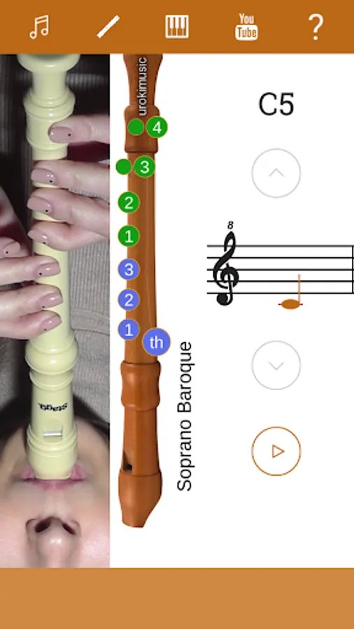The application shows you the position of the fingers on the instrument. You can hear the sound of each musical note. There is a diagram of the finger positions and a demonstration by a live flutist, so you will learn how to play recorder. You can choose different types of recorder: sopranino, soprano, alto, tenor, bass. Baroque and German fingering.