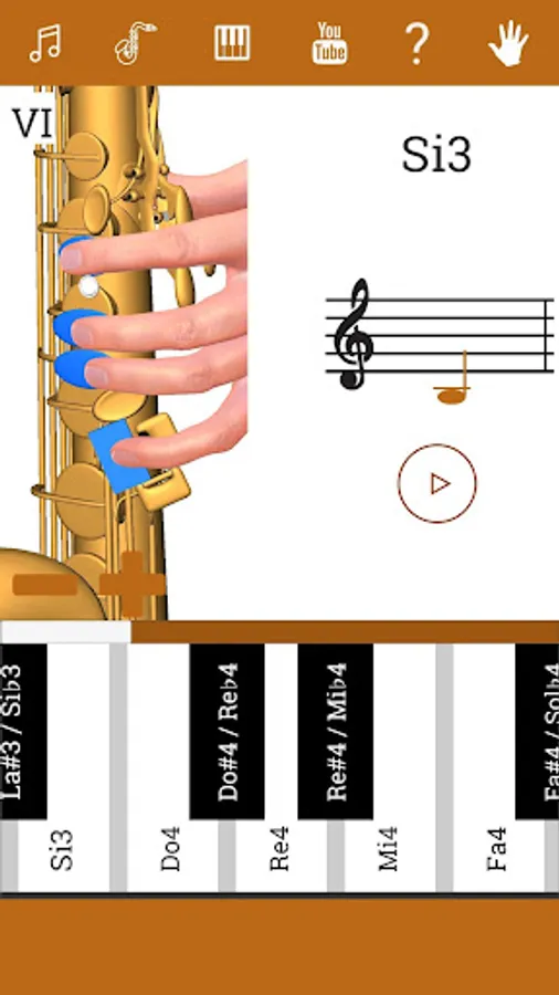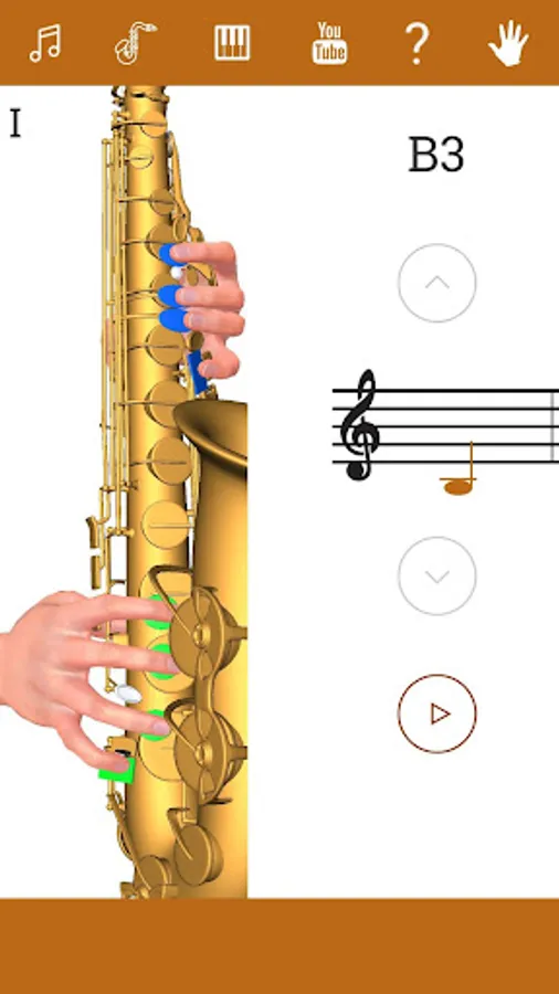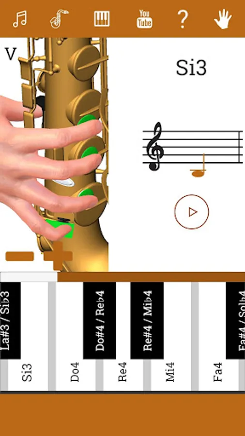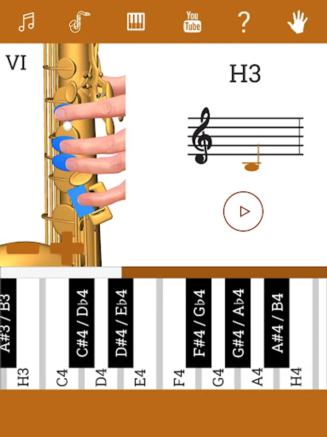 This application shows you the position of the fingers on the instrument. You can hear the sound of each musical note. There is a demonstration by 3d models, so you will learn how to play Saxophone. There is a section with saxophone lessons. You can choose different types of saxophone: Soprano B♭, Alto E♭, Tenor B♭, Baritone E♭.