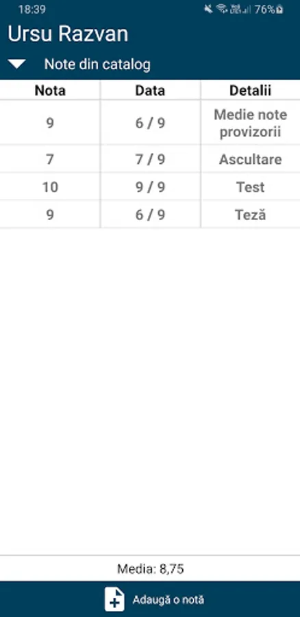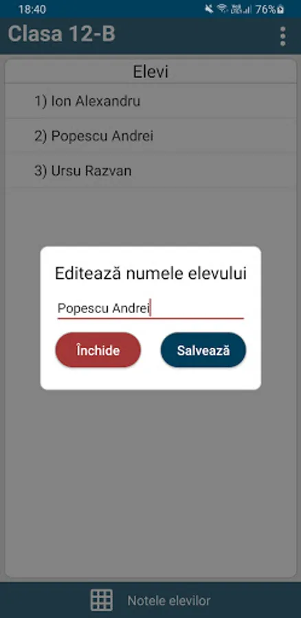 This application is created especially for teachers in order to replace their diaries / notebooks in which they write their students.