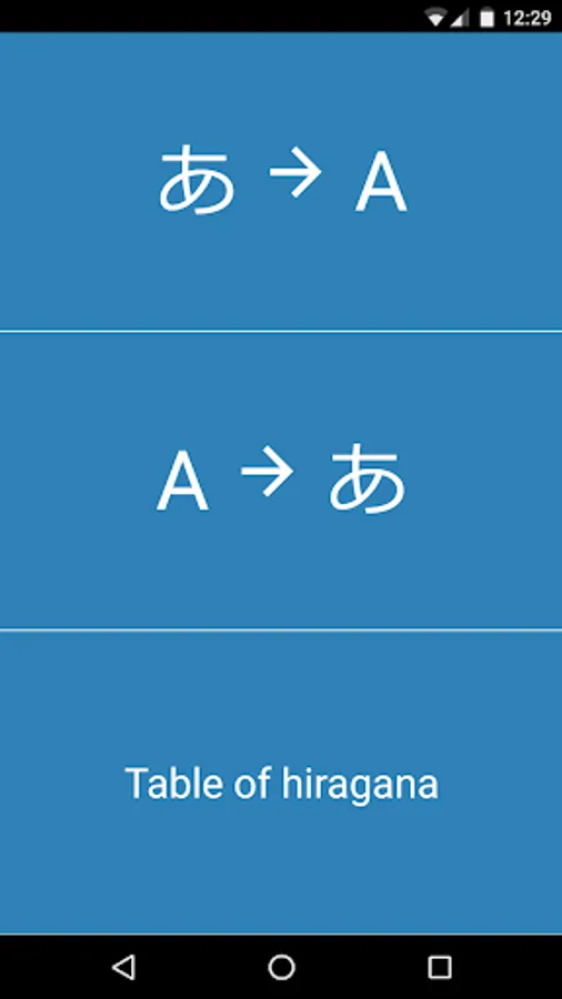 First, an hiragana is shown and you will have to identify the corresponding english transcription.