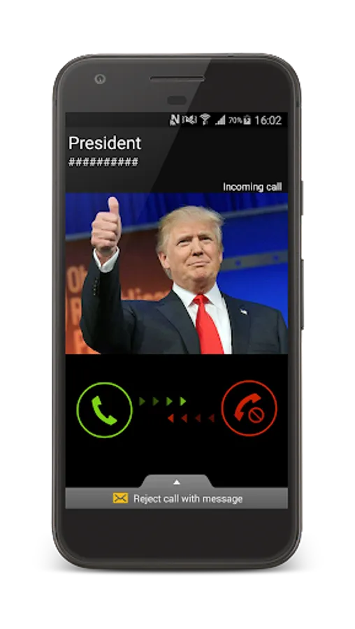 Everyone will think that you have a real incoming phone call! fool your friends or impress family, that you have phone call from a president or a Pope! Just download fake phone call and choose the caller by yourself!