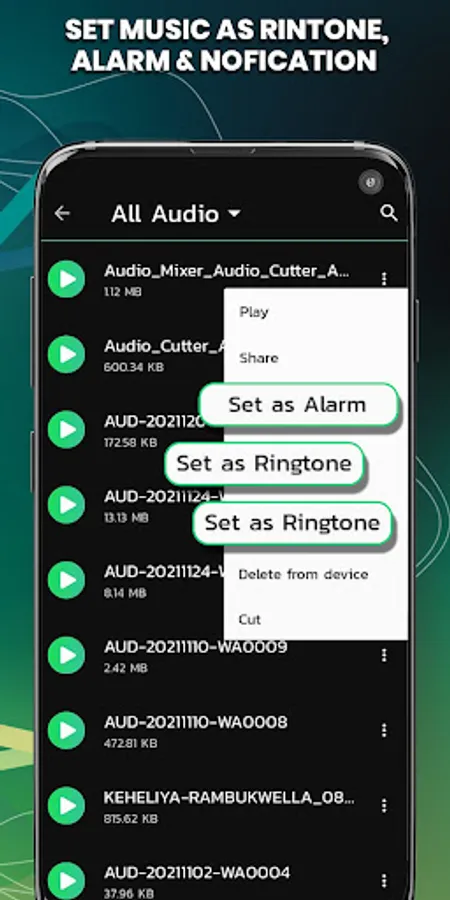 - Option to delete (with confirmation alert) the created Ringtone/Music/Alarm/Notification Tone.