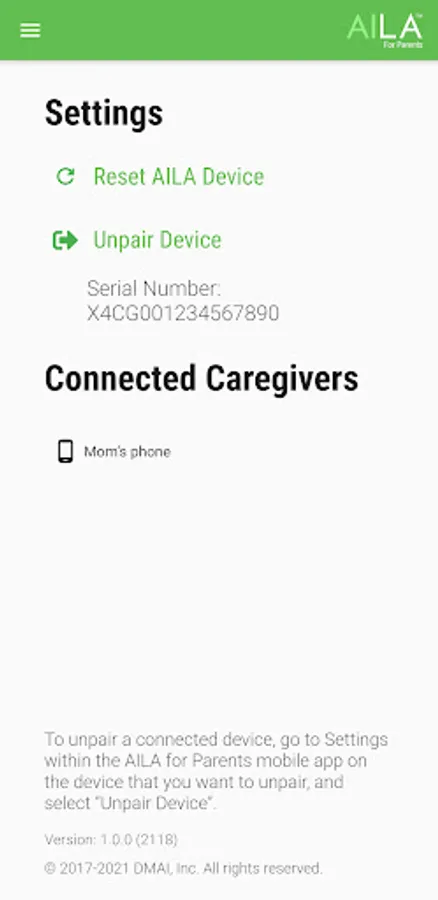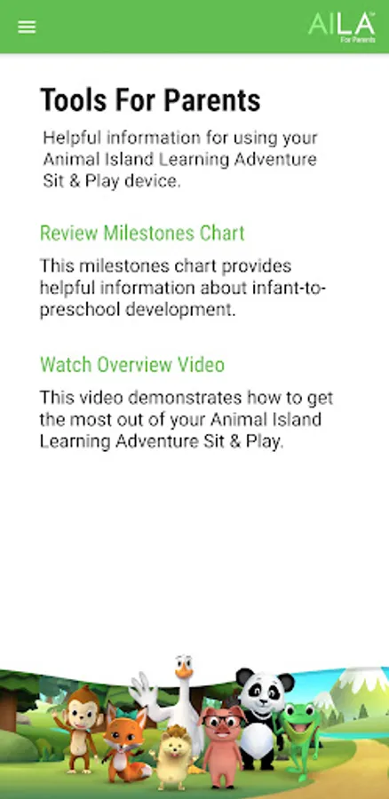 AILA for Parents is a free mobile app for use with an AILA Sit & Play device.